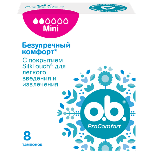 НАЙТИ ВЫГОДНЕЕ - O.b. тампоны ProComfort Mini, 2 капли, 8 шт.