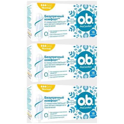 НАЙТИ ВЫГОДНЕЕ - O.b. тампоны ProComfort Normal, 3 капли, 16 шт., 3 уп.