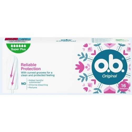 Тампоны для женщин Ob Original Super Plus - это наша классика для дней с очень интенсивными выделениями. Технология спираледных желобков обеспечивает более эффективное направление жидкости внутрь тампона, а технология StayDry (СтэйДрай) позволяет нити тампона оби оставаться сухой для дополнительного ощущения чистоты.