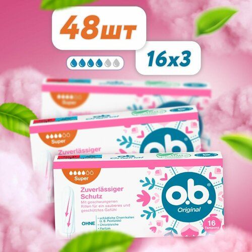 НАЙТИ ВЫГОДНЕЕ - O.B. Super Original, тампоны гигиенические женские ОБИ, мини средства личной гигиены для интимной зоны / набор 48 шт (3 упаковки по 16 штук)