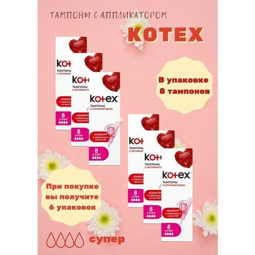 В упаковке содержится 8 штук тампонов котекс супер.
