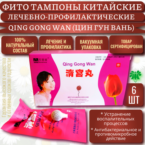 НАЙТИ ВЫГОДНЕЕ - Фитотампоны оригинальные китайские Qing Gong Wan (Цин Гун Вань) Womenscup, коробка 6 шт. Фито тампоны женские травяные лечебные гинекологические
