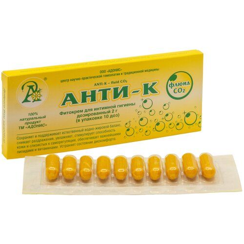 Свечи Анти-К-флюид СО2 – гомеопатический препарат полученный путем глубокого экстрагирования растительного сырья сжиженным диоксидом углерода. Инновационная технология позволяет выделить из растений наиболее труднодоступные биоактивные вещества. Поэтому краткосрочное применение суппозиториев Анти-К-флюид СО2 заменяет длительное лечение разными травами. Свечи Анти-К-флюид СО2 разработаны для устранения некоторых гинекологических и проктологических заболеваний, а также общего укрепления организма. Основные рекомендации для применения препарата: кольпиты, вульвовагиниты и другие гинекологические заболевания грибкового, инфекционного и воспалительного характера; проктиты, геморрой различной формы, язвенная болезнь, трещины, полипоз прямой кишки. Свечи Анти-К также показаны при иммунодефиците вследствие перенесенных инфекций, воспалительных заболеваний, а также в период восстановления после хирургических манипуляций на органах малого таза и нижнего отдела кишечника. Свечи Анти-К-флюид СО2 полностью натуральный препарат, включающий в себя масла и гомеопатические эссенции растений, применяемых в народной медицине для лечения проктологических и гинекологических патологий. Активный состав представлен следующими компонентами: Масло чайного дерева – проявляет противовирусную, противогрибковую и антибактериальную активность, устраняет очаги воспалений в органах малого таза, восстанавливает щелочной баланс, лечит молочницу, воспаления придатков, цистит. Масло пихты – оказывает бактерицидное, антисептическое, противовоспалительное, обезболивающее действие, укрепляет и тонизирует сосуды, ускоряет заживление. Масло облепихи – обеспечивает мощное заживляющее действие при эрозивно-язвенных поражениях слизистых оболочек кишечника и влагалища, применяется при лечении вагинитов, кольпитов, геморроя, проктитов. Экстракт зверобоя – обладает обезболивающими, заживляющими, антисептическими, противовоспалительными свойствами, восстанавливает углеводный и жировой обмен, улучшает кровообращение в малом тазу, стимулирует выработку некоторых гормонов, репродуктивные функции. Экстракт полыни – восстанавливает гормональный баланс и менструальный цикл, снижает объем выделений при месячных, проявляет бактерицидные, антисептические и противовоспалительные свойства, предупреждает формирование новообразований. Экстракт туи – обеспечивает антиоксидантную, антибактериальную, противогрибковую, противовирусную активность, предупреждает появление новообразований, купирует циклические боли, воспалительные и опухолевые процессы, лечит папилломы, маточные полипы, фибромиому. Экстракт тысячелистника – оказывает кровоостанавливающее, спазмолитическое и бактерицидное действие, снижает болезненность и объем выделений при месячных, рассасывает новообразования. В качестве основы суппозиториев Анти-К использовано масло какао, которое обладает противовоспалительным, регенерирующим, противоотечным, заживляющим действием. Какао масло укрепляет иммунную систему, улучшает микрофлору кишечника, разжижает каловые массы, снижает холестерин, повышает эластичность сосудов. Дополнительно к этому растительный состав Анти-К-флюид СО2 насыщает витаминами, микроэлементами, аминокислотами и прочими биоактивными вещест