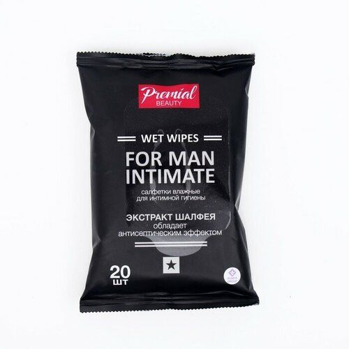 НАЙТИ ВЫГОДНЕЕ - Салфетки влажные Premial, для интимной гигиены, с экстрактом шалфея, мужские 20 шт