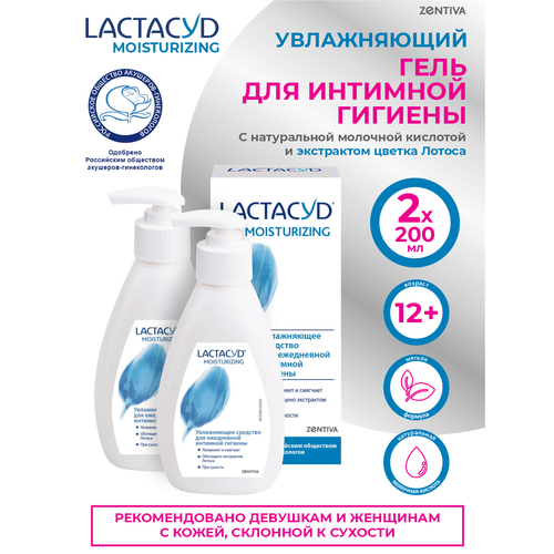 Средство для интимной гигиены LACTACYD Moisturizing 200 мл. х 2 шт. Увлажняющий гель для интимной гигиены Lactacyd Moisturizing предназначен для обеспечения максимального комфорта женщины от ежедневного ухода. Уровень его pH - нейтральный, и составляет 5.2 единицы. Благодаря этому, а также входящей в состав натуральной молочной кислоте, сохраняется естественная микрофлора вашей интимной зоны. Уникальный компонент увлажняющего средства для интимной гигиены Лактакцид - экстракт цветка лотоса. Этот экстракт богат полезными минеральными соединениями и витамином С. Эти элементы придают упругость и эластичность, а также способствуют восстановлению кожного покрова. Дополнительным преимуществом увлажняющего гель-средства для интимной гигиены Lactacyd Moisturizing является очень удобный дозатор, который служит до конца использования, не заедает и выдает нужное количество средства за одно нажатие.
