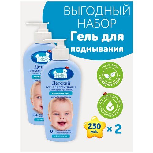 НАЙТИ ВЫГОДНЕЕ - Наша Мама Набор Гель для подмывания новорожденных младенцев с календулой и ромашкой, гипоаллергенный, 0+, 250мл 2шт.
