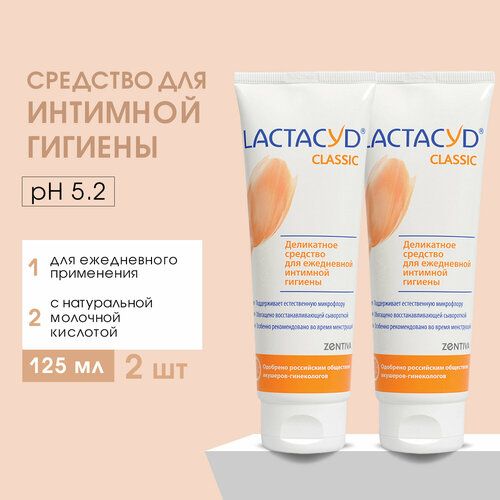 Средство для интимной гигиены Lactacyd classic 125 мл. Разработано специально для бережного ухода за женской интимной зоной. Лосьон нежно очищает и обеспечивает чувство свежести и комфорта на протяжении целого дня. Гель имеет нейтральный уровень pH, максимально приближенный к естественному – 5.2. Деликатная формула обогащена молочной кислотой и сывороткой. Ухаживающие ингредиенты: помогают сохранять правильную микрофлору, поддерживать естественный защитный барьер. Средство одобрено российским обществом акушеров-гинекологов. Рекомендуется для ежедневного применения дважды в день, а также - после физических нагрузок или купания.