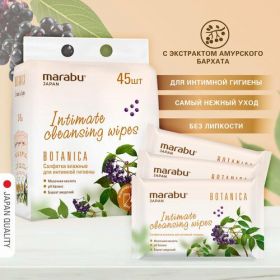 НАЙТИ ВЫГОДНЕЕ - Влажные салфетки MARABU, для интимной гигиены, без отдушки, с молочной кислотой, амурским бархатом
