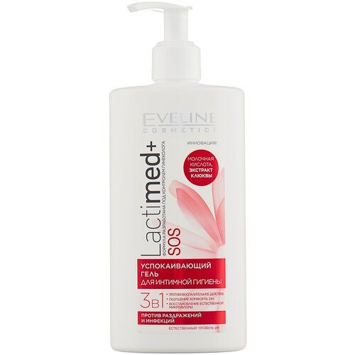 НАЙТИ ВЫГОДНЕЕ - Eveline Cosmetics Успокаивающий гель для интимной гигиены LACTIMED+ 3в1 SOS, клюква, бутылка, 250 мл