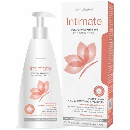 Compliment intimate Гель для интимной гигиены с пребиотиками 250 мл Для ежедневного качественного ухода за деликатной зоной тела, увлажнения, смягчения, бактерицидного воздействия и восстановления здоровой бактериальной микрофлоры косметическая компания "Тимекс" разработала гель для интимной гигиены Compliment intimate с пребиотиками. Продукция этого производителя косметики уже много лет пользуется заслуженным спросом на рынке, так как прочно ассоциируется у потребителей со стабильным качеством, высокой эффективностью и выгодной ценой. Для изготовления своих продуктов компания использует только сырье проверенных европейских марок, современные и экологически безопасные рецептуры, которые отличаются гарантированным действием и способны удовлетворить запросы самых требовательных покупателей. Гель для интимной гигиены создан специалистами косметической марки для максимально качественного ежедневного ухода за деликатными зонами тела, оказывает отличное увлажняющее, смягчающее и бактерицидное воздействие, способствуя восстановлению здоровой бактериальной микрофлоры. В качестве основы для геля Compliment используются молочная кислота и пребиотики, которые обладают антибактериальными, противогрибковыми, противовоспалительными и ранозаживляющими свойствами, существенно снижая риск появления и распространения патогенных бактерий. Помимо этого, они значительно улучшают кровоснабжение тканей органов в интимной зоне. Состав: Aqua, Lauryl Glucoside, Coco-Glucoside, Cocamidopropyl Betaine, Acrylates/Palmeth 25 Acrylate Copolymer, Glycerin, Inulin, Alpha-Glucan Oligosaccharide, Lactic Acid, Calendula Officinalis Flower Extract, Chamomilla Recutita (Matricaria) Flower Extract, D-Panthenol, Triethanolamine, Parfum, Tea Tree Leaf Oil, Phenoxyethanol