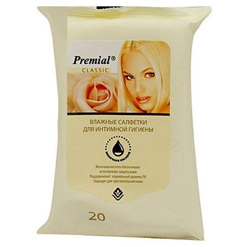 Влажные салфетки Premial, для интимной гигиены с молочной кислотой, 20 шт. (комплект из 38 шт)