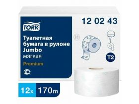Туалетная бумага рулонная ТОРК (TORK) Premium T2, 12 рулонов по 170 метров, 2-слойная, белая, 120243 100526171975