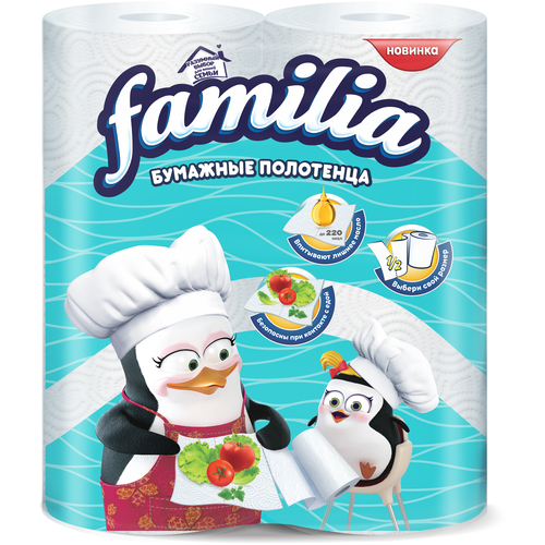 Описание: двухслойные бумажные полотенца Familia станут универсальным и незаменимым помощником в доме. С их помощью можно легко вытереть пролитую жидкость, отполировать до блеска стекла или посуду, очистить поверхность. 2 рулона в упаковке.