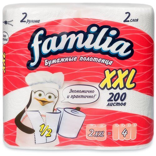 НАЙТИ ВЫГОДНЕЕ - Полотенца бумажные Familia XXL белые двухслойные 200 лист., белый, без запаха