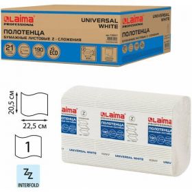 НАЙТИ ВЫГОДНЕЕ - Полотенца бумажные 190 шт, LAIMA (Система H2) UNIVERSAL WHITE, 1-слойные, белые, комплект 21 пачка, 22,5х20,5 см, Z-сложения, 112517