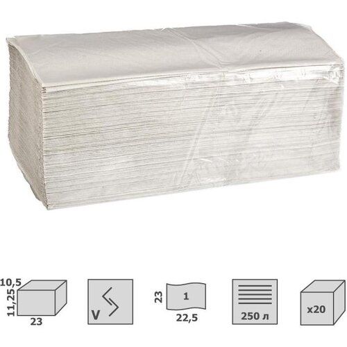 НАЙТИ ВЫГОДНЕЕ - Полотенца бумажные 250 шт, VITA эконом (H3) 1-слой, серые, комплект 20 пачек, 22х23 см, V-сложение, NV-250N1 (арт. 114220)