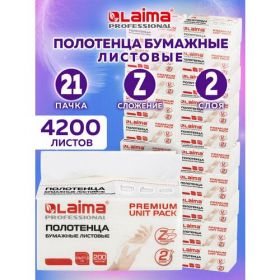 НАЙТИ ВЫГОДНЕЕ - Бумажные полотенца для диспенсера листовые, 21 пачка по 200 полотенец, 2-слойные, Z-сложение, Laima, 880947