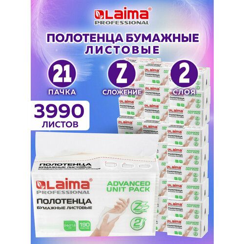 НАЙТИ ВЫГОДНЕЕ - Бумажные полотенца для диспенсера листовые, 21 пачка по 190 полотенец, 2-слойные, Z-сложение, Laima, 880945