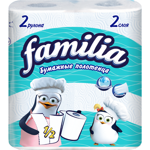 НАЙТИ ВЫГОДНЕЕ - Familia Бумажные полотенца белые двухслойные, 2шт