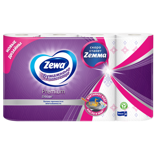 НАЙТИ ВЫГОДНЕЕ - ZEWA Бумажные полотенца, Premium Decor, 2слоя, 4 шт /