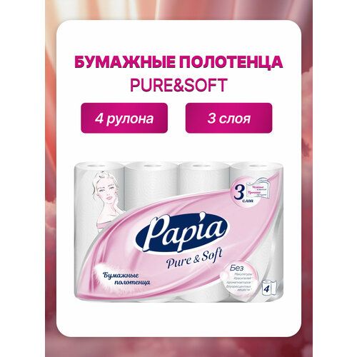 НАЙТИ ВЫГОДНЕЕ - Бумажные полотенца кухонные PAPIA PURE SOFT трехслойные 4 рулона, 3 слоя
