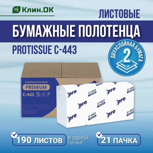НАЙТИ ВЫГОДНЕЕ - Бумажные полотенца листовые PROtissue C443, Z-сложения 2-слойные 21 пачка по 190 листов