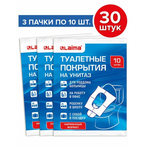 НАЙТИ ВЫГОДНЕЕ - Одноразовые накладки/покрытия защитные на сиденье унитаза в путешествие/роддом/школу 30 штук, Laima, универсальный размер, 880537