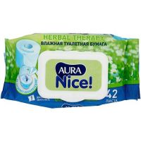 НАЙТИ ВЫГОДНЕЕ - Влажная туалетная бумага Aura Nice Herbal therapy с ромашкой белая, ромашка