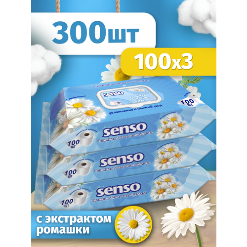 НАЙТИ ВЫГОДНЕЕ - Влажная туалетная бумага Senso Baby, с экстрактом ромашки, 3 уп, 300 шт.