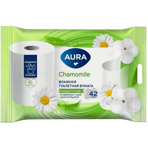 Влажная туалетная бумага изготовлена из тканеподобного полотна, лист бумаги очень нежный и приятный на ощупь, пропитывающий лосьон содержит экстракт ромашки, который обладает противовоспалительным действием. Не содержит спирта, силиконов, красителей. Не засоряет канализацию.