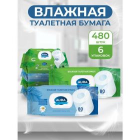 НАЙТИ ВЫГОДНЕЕ - Влажная туалетная бумага алоэ и ромашка 480 шт (80 шт х 6), AURA ULTRA COMFORT