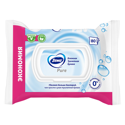 Бумага туалетная влажная ZEWA Pure, 80шт
