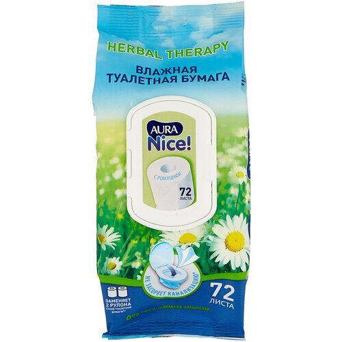 НАЙТИ ВЫГОДНЕЕ - Влажная туалетная бумага Aura Nice Herbal therapy с ромашкой белая, ромашка