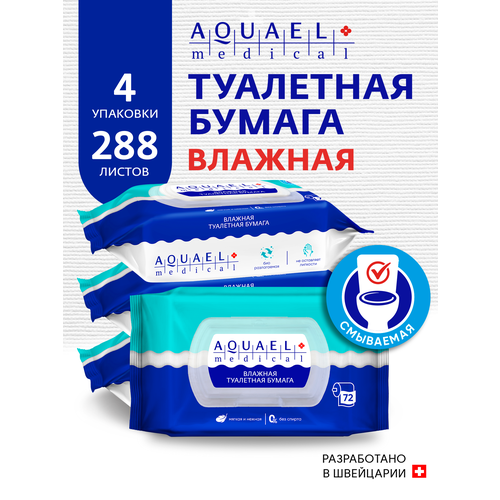 НАЙТИ ВЫГОДНЕЕ - AQUAEL medical влажная туалетная бумага смываемая с экстрактом Алоэ без спирта в пластиковом пакете с клапаном 288 шт. (72шт. х 4 упаковки)