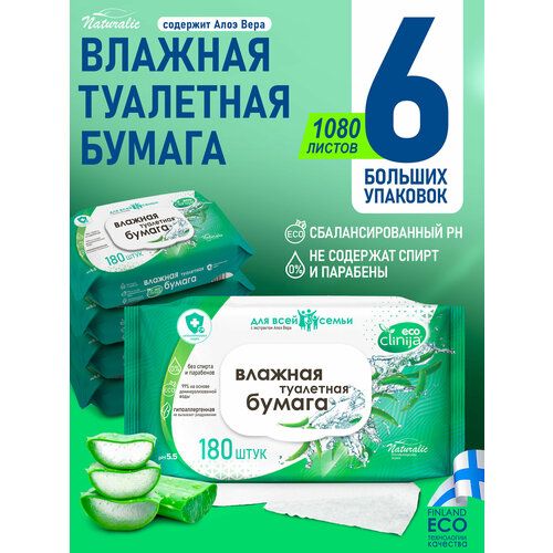 НАЙТИ ВЫГОДНЕЕ - Влажная туалетная бумага, без спирта, гипоаллергенная, 6 упаковок по 180 шт