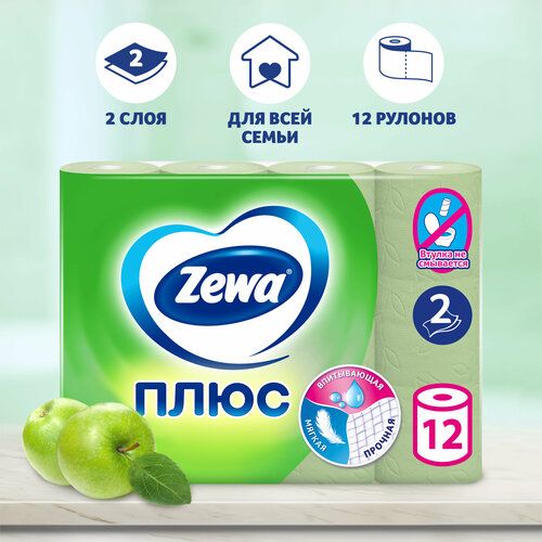 НАЙТИ ВЫГОДНЕЕ - Туалетная бумага Zewa Плюс Яблоко, 2 слоя, 12 рулона