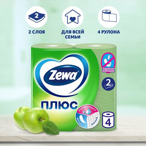 НАЙТИ ВЫГОДНЕЕ - Туалетная бумага Zewa Плюс Яблоко, 2 слоя, 4 рулона