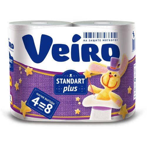НАЙТИ ВЫГОДНЕЕ - Туалетная бумага Veiro Standart Plus белая двухслойная, без запаха