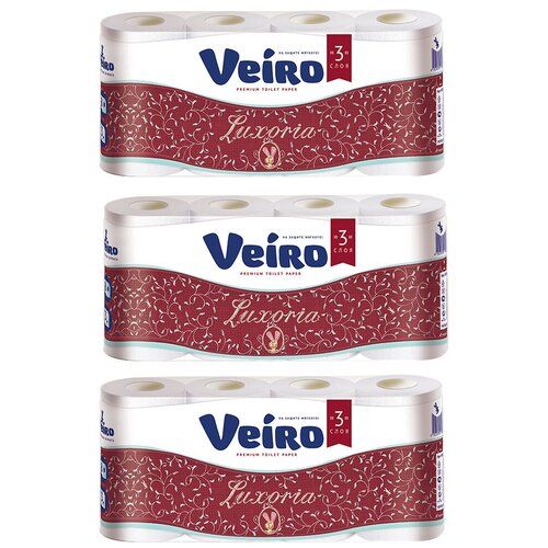 НАЙТИ ВЫГОДНЕЕ - Туалетная бумага Veiro Luxoria белая трёхслойная, 3 уп.