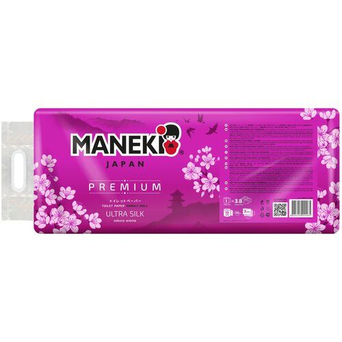 Туалетная бумага 3 слояvс ароматом Maneki. В производстве туалетной бумаги Maneki используется органическая целлюлоза высшего качества, без примесей и флуоресцентных красителей, что позволяет использовать ее даже для самой чувствительной и нежной кожи.