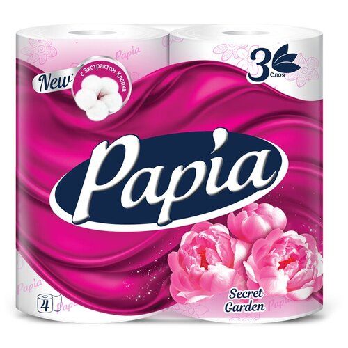 НАЙТИ ВЫГОДНЕЕ - Бумага туалетная Papia Secret Garden, 3х-слойн, 4шт, ароматизир, розов. тиснение, белый