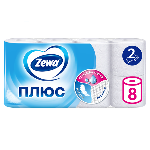 НАЙТИ ВЫГОДНЕЕ - Туалетная бумага Zewa Плюс Без аромата, 2 слоя, 8 рулона