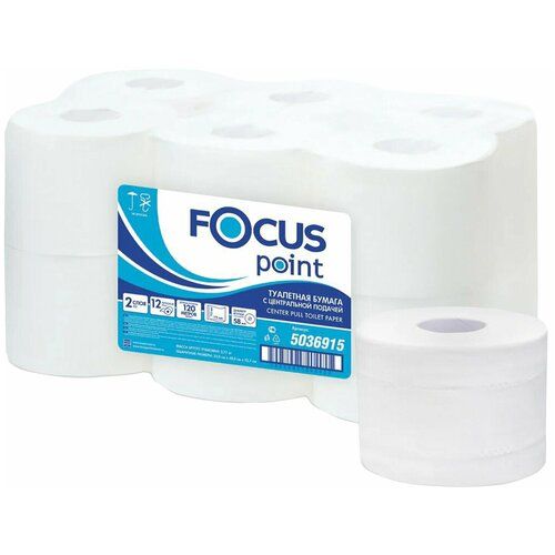НАЙТИ ВЫГОДНЕЕ - Туалетная бумага с центральной подачей Focus Point 5036915, двухслойная, 12 рулонов по 120 м (686 листов)