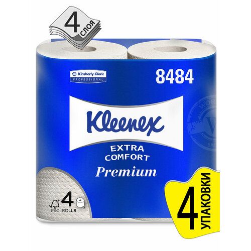 НАЙТИ ВЫГОДНЕЕ - Туалетная бумага Kleenex Premium Extra Comfort 8484 ( Клинекс Премиум Экстра Комфорт ) / четырёхслойная , 4 упаковки ( 16 рулонов )