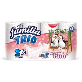 НАЙТИ ВЫГОДНЕЕ - Туалетная бумага Familia Trio белая трехслойная, цветочный