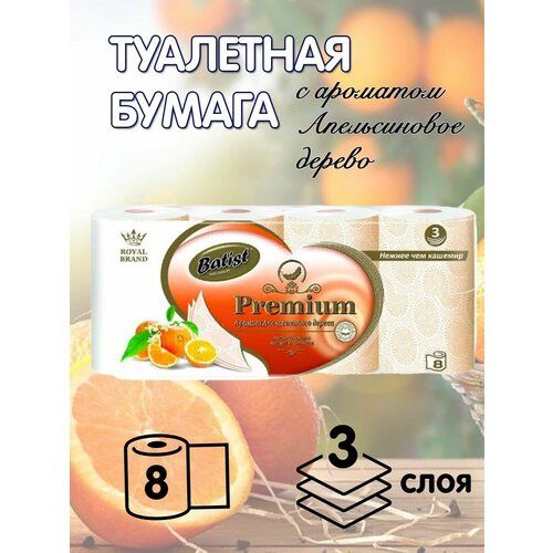 НАЙТИ ВЫГОДНЕЕ - Туалетная бумага Batist Premium трехслойная, с ароматом апельсина 8 рулонов