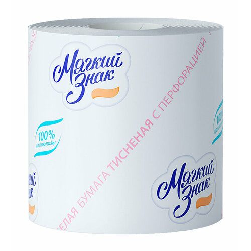 Туалетная бумага «Мягкий знак» 1-слойная с тиснением и перфорацией.