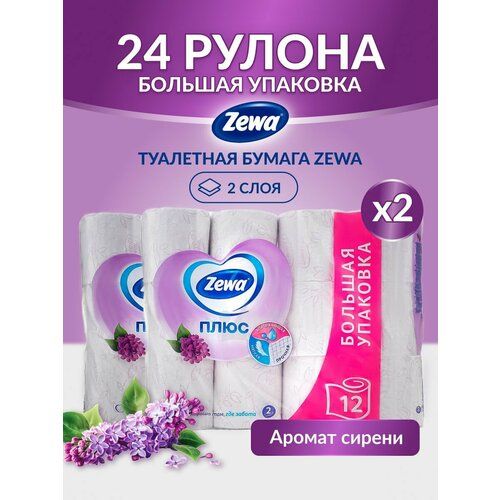 НАЙТИ ВЫГОДНЕЕ - Туалетная бумага Zewa Плюс, 2 слоя, 24 рулона с ароматом Сирени