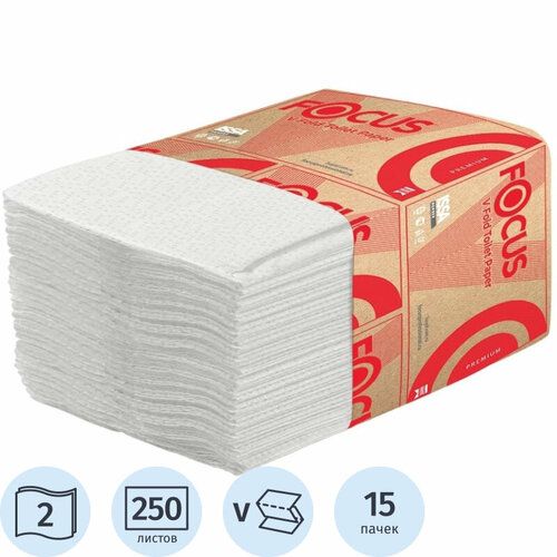 Бумага туалетная листовая Focus Premium 2-слойная 15 пачек по 250 листов Туалетная бумага Focus V-сложения размещается в компактном диспенсере, который подойдет под любой интерьер. Листовая подача туалетной бумаги поможет лучше контролировать расход и обеспечит максимальную гигиеничность: бумага выдается поштучно, что исключает соприкосновение рук со следующим листом. Листовая туалетная бумага - рациональное решение для мест с высокими требованиями к чистоте и гигиене. Упакованная в полиэтиленовый короб бумажная продукция подвержена меньшему влиянию окружающих факторов при транспортировке. Размеры: размер листа 10.8x23 см, размер пачки 10.8х12х11,5 см.