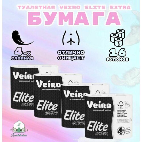 НАЙТИ ВЫГОДНЕЕ - Бумага туалетная Veiro Elite Extra 4-х слойная 16 рулонов в упаковке